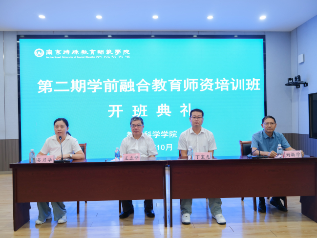 南京特殊教育师范学院王立新校长参加开班仪式致辞,他指出学前融合教育是一项充满挑战又意义非凡的事业,鼓励学员珍惜培训机会,善于学习、勇于实践、敢于创新,成为学前融合教育的倡导者、践行者和推动者。教育科学学院刘新学院长详细了学校的办学历史和办学特色,特别是在学前融合教育领域的积极探索和实践。来自南京市栖霞区栖霞幼儿园的高智萍老师做了代表发言。江苏省特殊教育师资培训中心主任兼继续教育学院院长丁宝龙也参加了开班仪式,教育科学学院党总支书记吴月华主持。