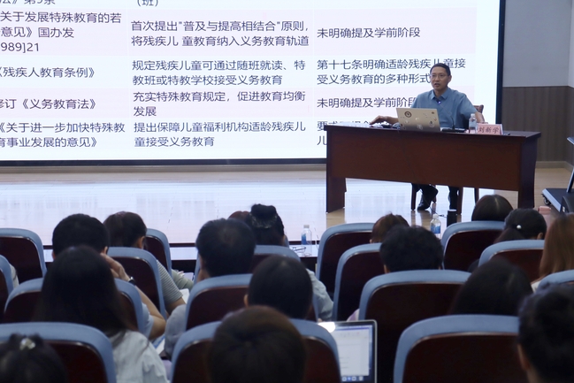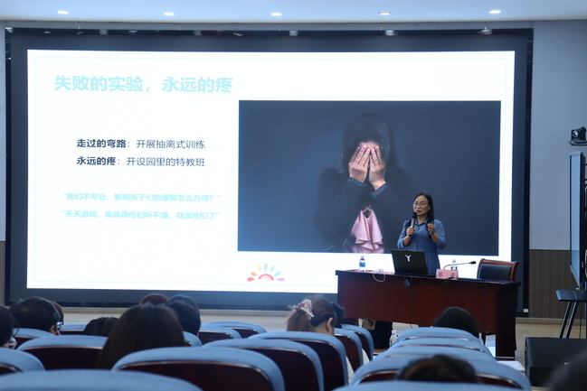 随后,教育科学学院刘新学院长以“学前融合教育的理念、政策与发展趋势”为主题,宏观梳理了我国学前融合教育领域的政策演进和发展趋势,指出学前融合教育优质普惠发展,是新时代我国学前融合教育和特殊教育现代化发展的必然趋势,而强化支持保障机制、加强教师队伍建设,是推进学前融合教育优质普惠发展的重要任务和主要措施。张丽莉副院长在孤独症儿童学前融合教育主题讲座中,系统性的从环境创设,课程调整,专业支持模式三个方面为老师们提供了提升孤独症儿童学前融合教育质量的策略。