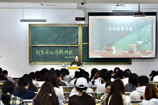 为帮助教育科学学院2025级小学教育专业新生明确专业定位、规划大学生涯,2025年10月15日下午,小学教育专业导航讲座于B201教室顺利举行。本次讲座由小学教育系主任赵文超老师主讲,全体2025级小学教育专业新生参加。