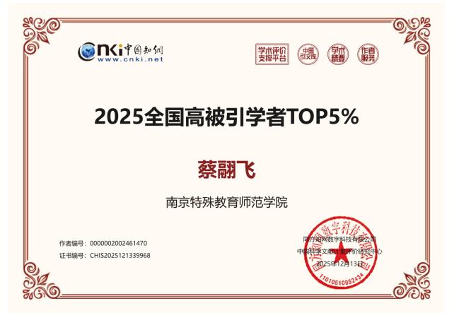 2025年12月12日,中国知网下属的中国科学文献计量评价研究中心(出版智库)发布“2025全国高被引学者”榜单。教育科学学院院长刘新学教授、副院长蔡翮飞教授双双入选全国高被引学者Top5%。