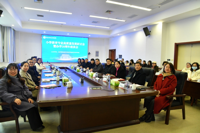 为深入学习贯彻习近平总书记关于教育的重要论述精神,探讨人口变化新形势下,如何结合“新文科”建设要求,推进小学教育专业高质量发展,12月24日下午,教科院小学教育专业高质量发展研讨会暨专业办学20周年座谈会在实验实训大楼201会议室召开。学校校长王立新、江苏省教育评估院院长周明、江苏省教育科学研究院中小学教研室副主任叶兵、南京市长江路小学党总支书记曹海永、南京市樱花小学校长李勤、南京晓庄学院附属小学副校长王剑、南京晓庄学院顶山实验小学副校长邹立凡,校友代表石一男,以及校党委办公室主任兼教科院党总支书记杨龙祥、教科院院长刘新学、教育教学评估中心主任万谊、国有资产管理处处长、教科院原党总支书记吴月华、人工智能学院党总支书记、教育教学评估中心原主任葛修娟、特殊教育学院院长、小学教育专业原带头人李拉、教科院副院长蔡翮飞、小学教育专业系主任赵文超、特殊教育学院教师、小学教育专业原教研室主任牟玉杰、教科院师生代表参加会议。杨龙祥主持会议。