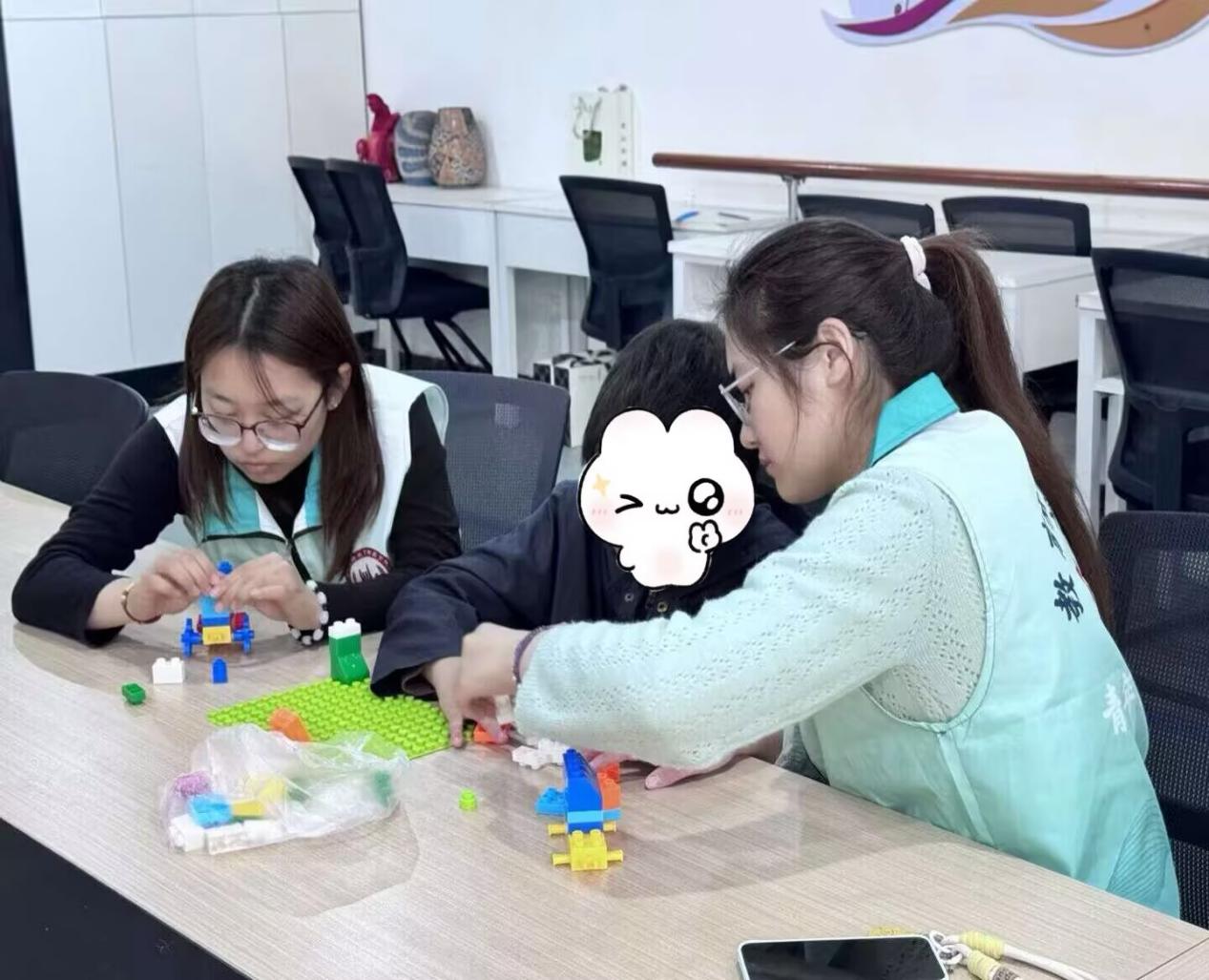 乐高搭建环节,更是点燃了孩子们的创作热情。志愿者融合学前教育动手培养与小学教育综合素质培育理念,结合孩子动手能力和认知水平,拆分步骤引导创作。五颜六色的积木在双方手中拼接出各式造型,志愿者用专业方法鼓励孩子大胆表达,锻炼其精细动作与协作意识,让孩子在实践中收获快乐,也坚定了志愿者用专业守护孩子成长的信念。
