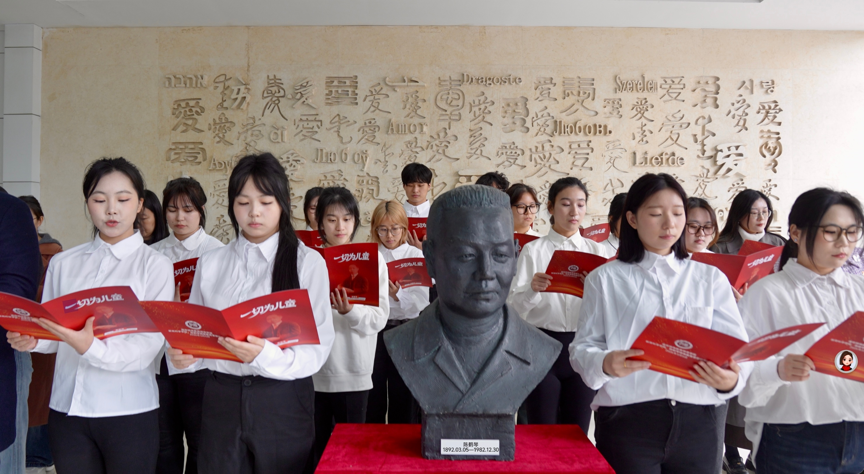 活动现场,师生环绕陈鹤琴先生雕像肃立,在百爱墙的温情氛围中齐声诵读经典,重温先生“一切为儿童”“让每一位残障儿童享有到人类应有的幸福”的宏愿与教诲。琅琅书声里,先贤教育思想跨越时空、直抵人心,彰显出南京特师对特殊教育事业的赤诚坚守。