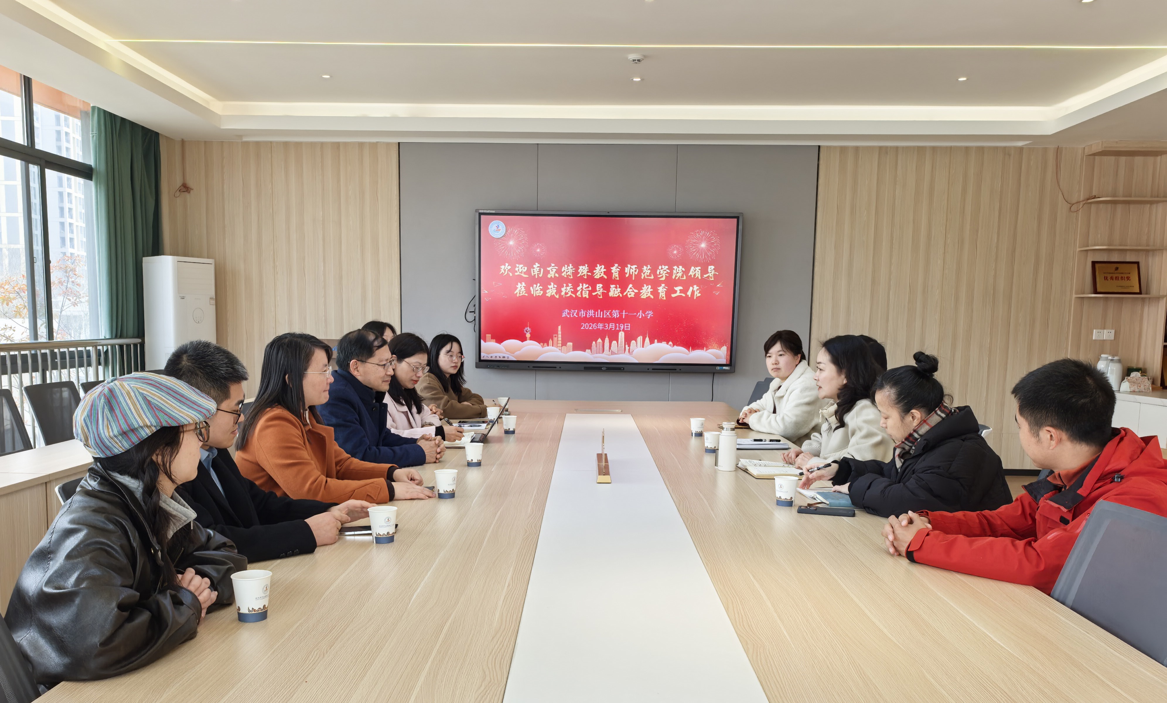 在武汉市洪山区第十一小学,调研组深入了解该校在随班就读、资源教室运营、特殊学生个案跟踪等方面的实践经验。双方围绕小学融合教育师资短缺、教师专业素养提升、未鉴定特殊需求学生识别与支持等现实问题展开坦诚而深入的交流,重点探讨高校融合教育人才培养与小学一线岗位需求精准对接的实践进路和测评框架。